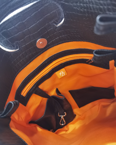 Ledertüte Kroko schwarz